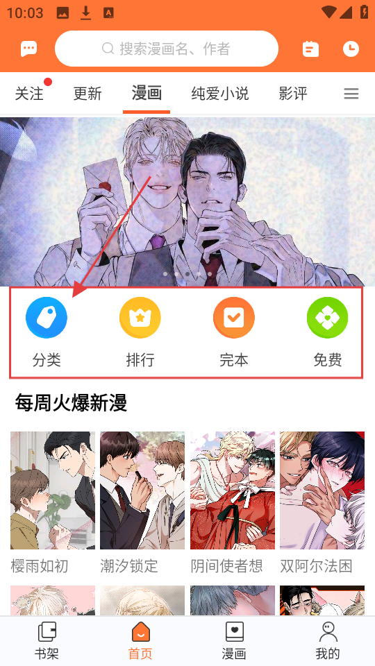1、想找喜欢的漫画,点【分类】呀,里面能按类型筛选,快去挑挑吧。