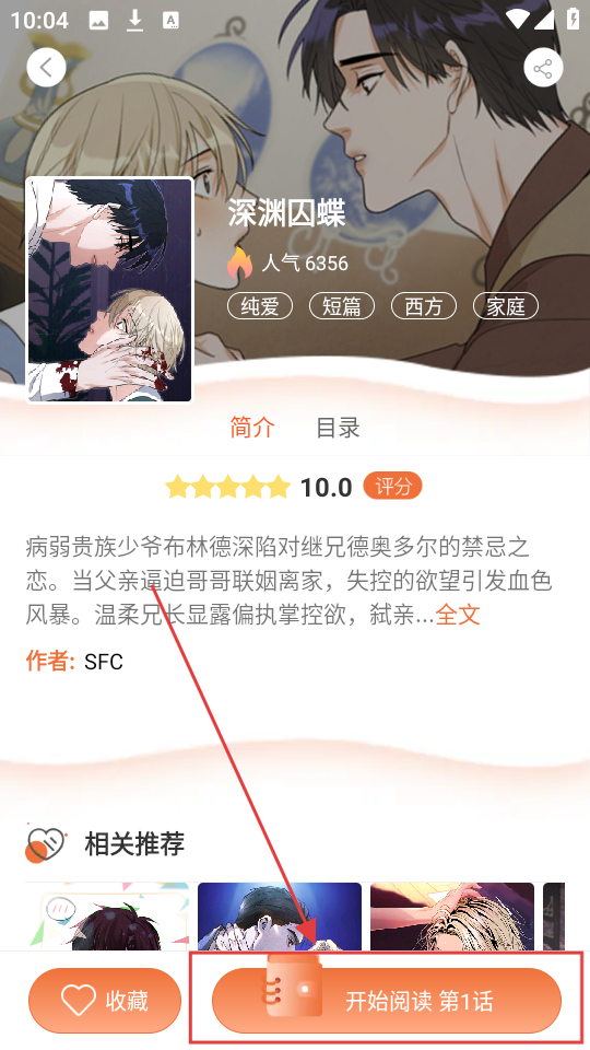 4、找到喜欢的漫画后,点【开始阅读第1话】,就能开启漫画阅读之旅啦。