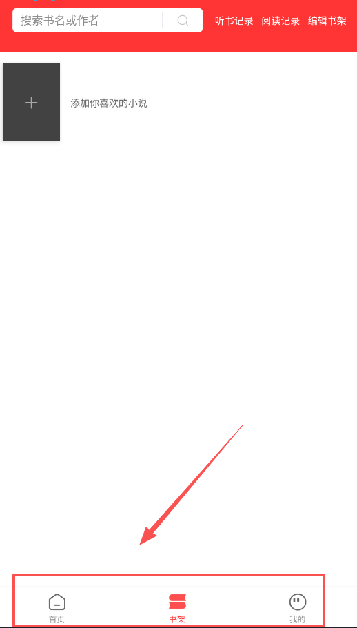 1、首先呢,打开软件后底部有首页、书架和我的三个主要板块。