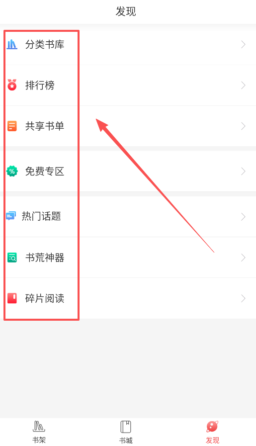 3、发现页的免费专区能帮你省钱,而共享书单和分类书库则能帮你深度挖掘特定类型的好书。