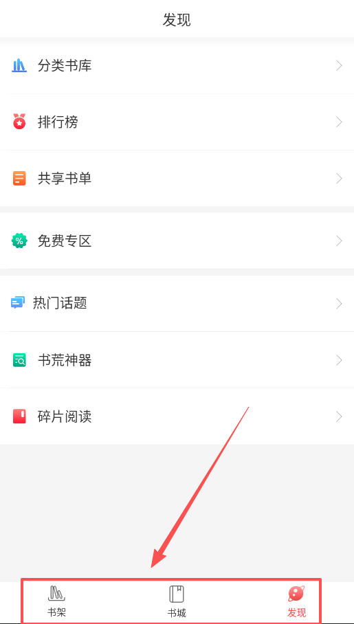 1、软件主要分为三大块,书架管理你的个人收藏,书城负责找新书,发现页则提供各种特色推荐和工具。