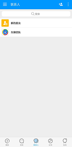 3、其次还可以当作聊天软件使用,消息和联系人就感觉在使用社交软件一样,还可以添加好友,搜索先锋号即可。