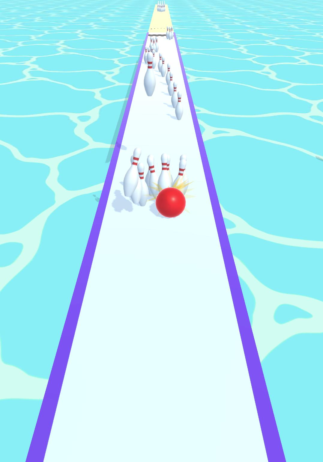 2、这款游戏有着清新风格,你可以控制保龄球向前,然后躲避障碍击倒更多的球并超越对手到达终点。