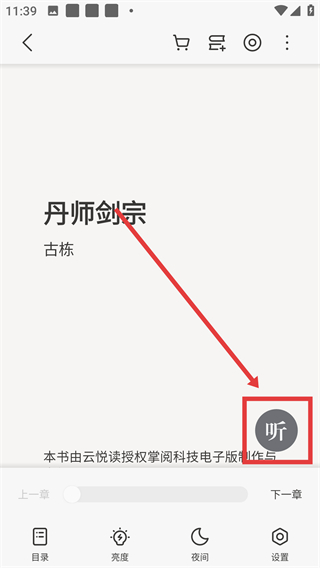2、进入阅读界面后,点右侧的【听】按钮,可切换到听书模式,用音频形式“阅读”书籍啦。