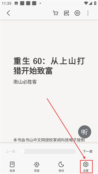 3、在阅读界面点击底部【设置】,展开阅读配置面板,可调整字体等阅读相关选项哦。