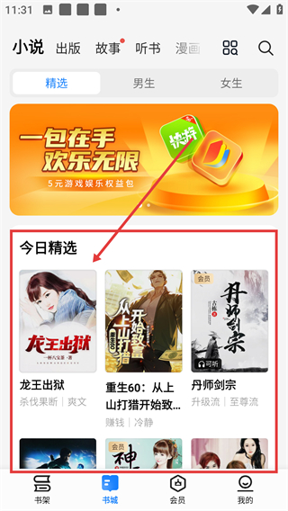 1、在APP的书城页面,点击【今日精选】里的目标小说封面,可进入该小说的详情界面,准备开启阅读啦。