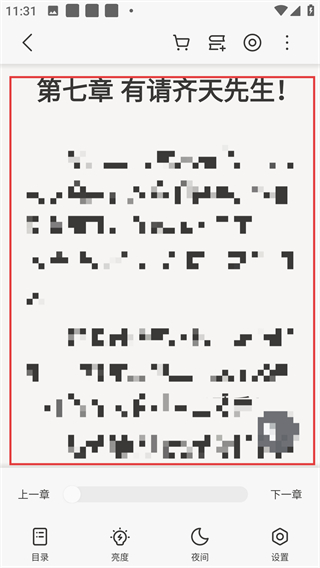 4、进入章节阅读界面后,可通过底部的“上一章”“下一章”按钮切换章节,还能调整阅读设置哦。