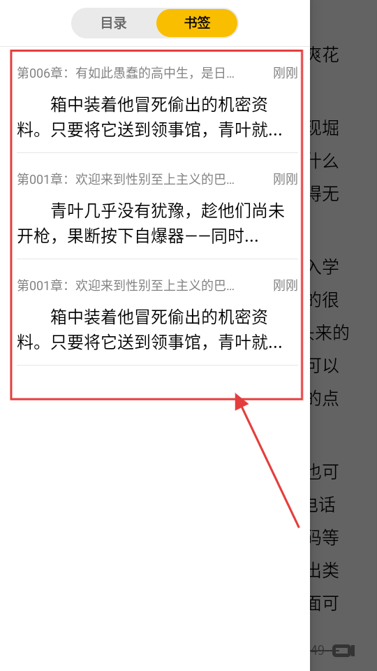 4、点开书签栏,能看到之前添加的书签,点击就能快速回到对应章节,阅读更顺畅呀。