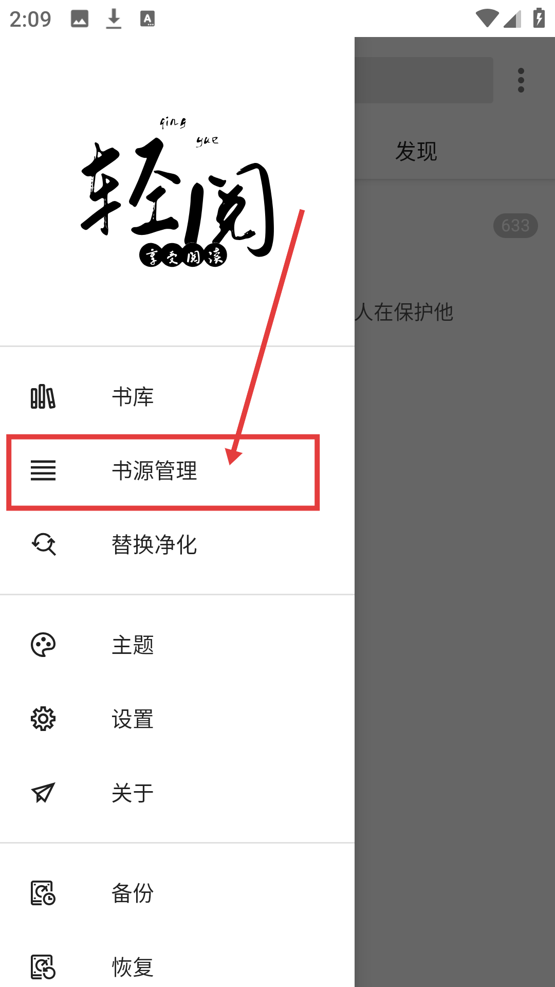 1、在轻阅应用侧边栏点击【书源管理】选项,进入书源管理页面哦。