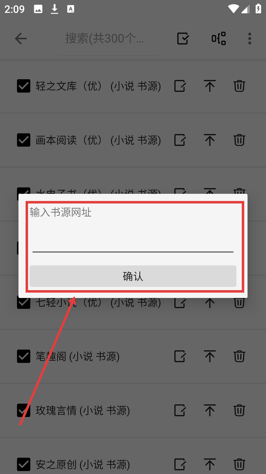 4、在网络导入页面输入书源网址,点击【确认】按钮,即可完成书源网络导入啦。