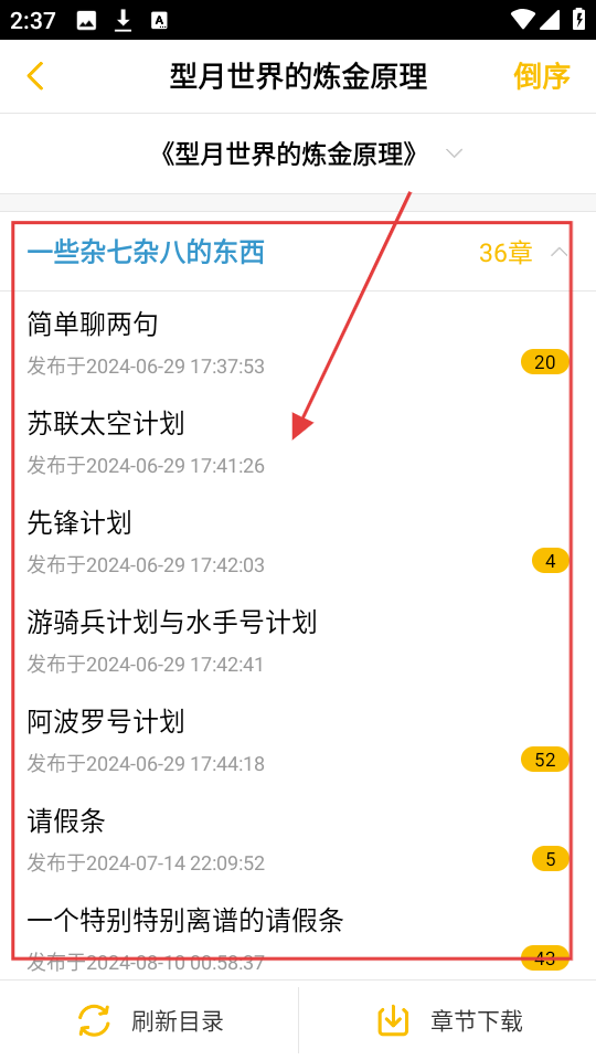 2、进入书籍详情页后,点击【目录】,可进入章节列表页面,查看书籍的章节内容哦。