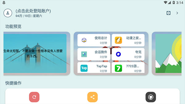 1、下载安装会话微件app,点击屏幕中的软件图标进入软件首页,首页如下图。