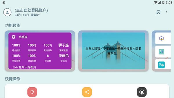 1、直接使用快速模式天气和倒计时和工具和待办事项列表,等等,以提高用户的自己的生活来处理不同的操作要求。