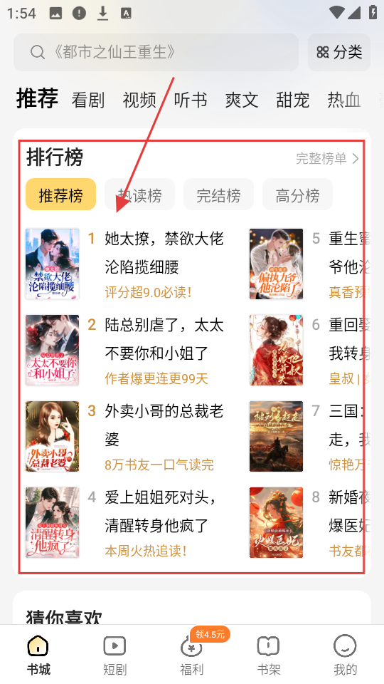 1、进入软件,有推荐的小说榜单,看中喜欢的小说就点击,开启阅读吧。
