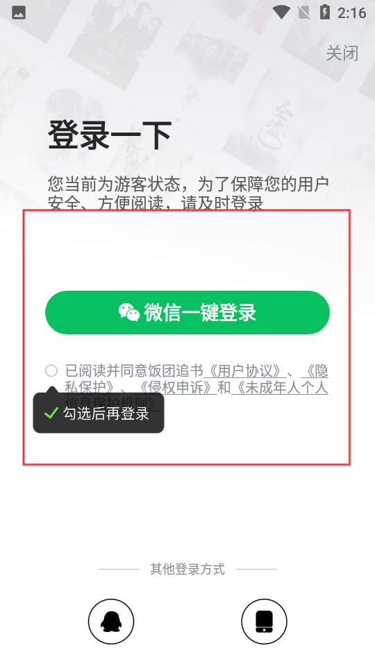 4、若需登录,在登录页面,勾选同意协议后,点击【微信一键登录】,即可完成登录啦。