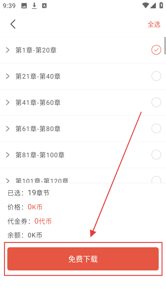 4、选好章节后,点击【免费下载】按钮,即可开始下载所选章节,方便离线阅读啦。