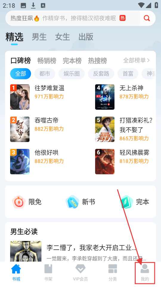 1、书城页点【我的】,进入个人中心,可查看个人信息和功能选项哦。