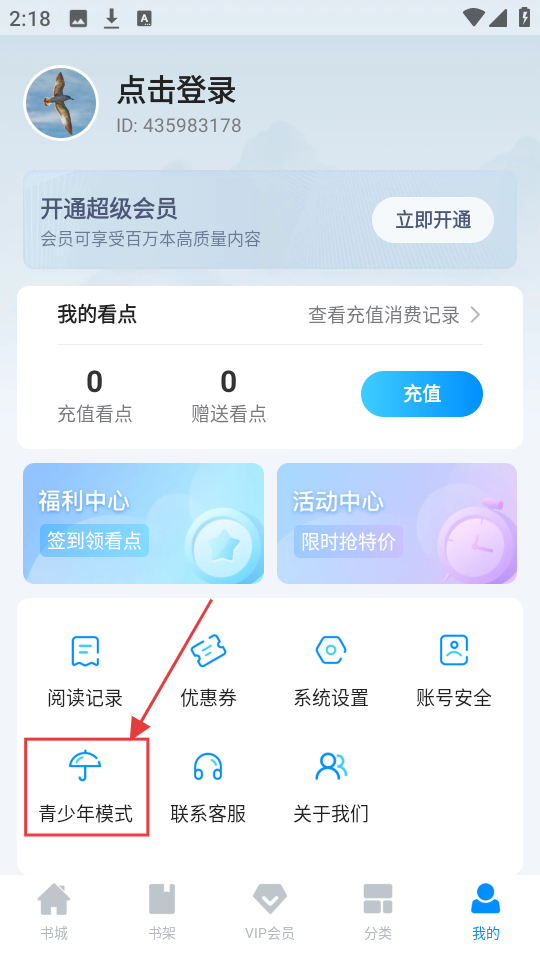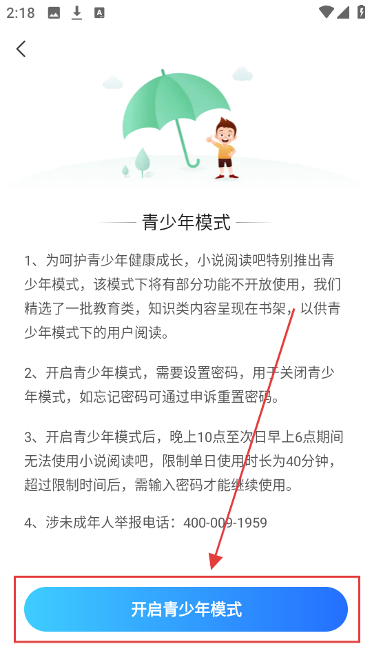 2、个人中心页点【青少年模式】,进入青少年模式介绍页,了解模式规则啦。