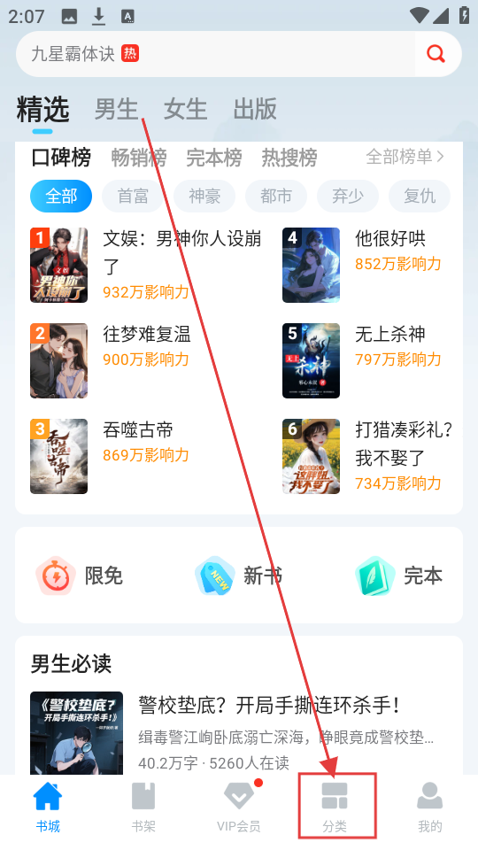 1、书城页点【分类】,进入分类页面,可挑选小说类型,超方便呢。