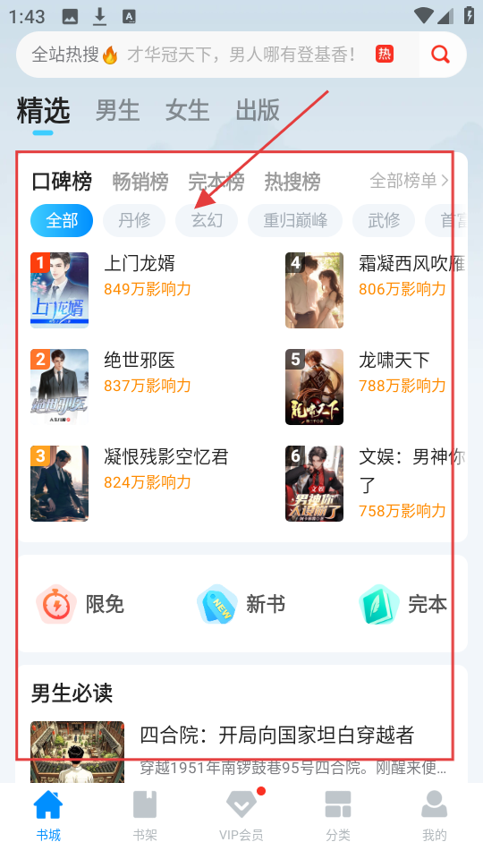 1、在书城榜单板块找到《上门龙婿》,点击进入书籍详情页哦。