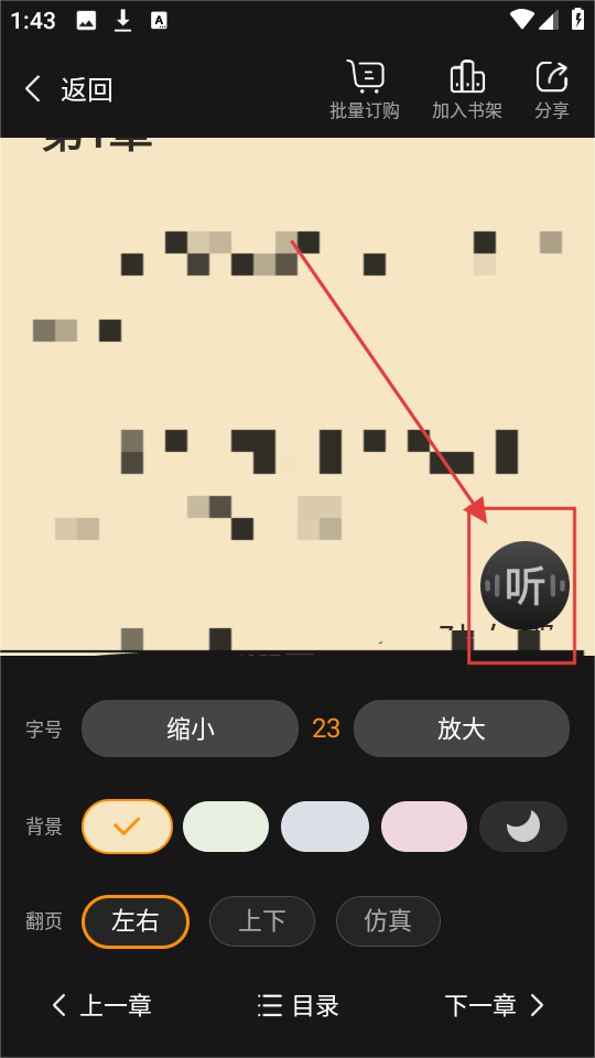 3、在阅读界面点击【听】,就能开启听书功能,切换成音频模式阅读哦。