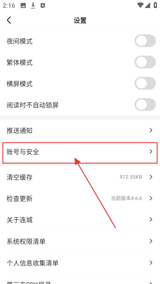 3、在设置页面,点击【账号与安全】,可进入账号管理页面,查看账号安全相关选项啦。
