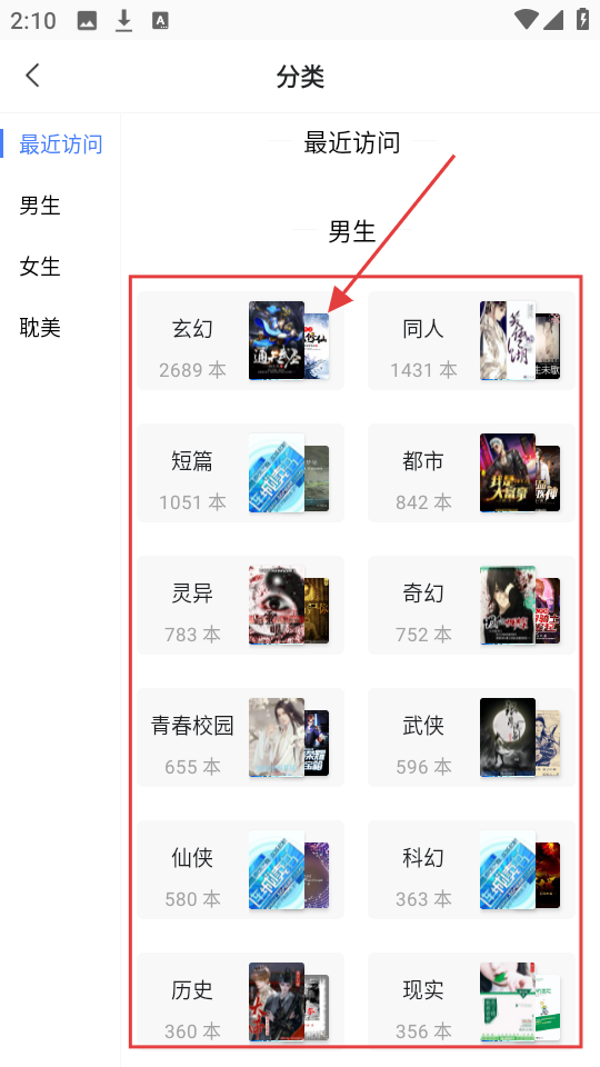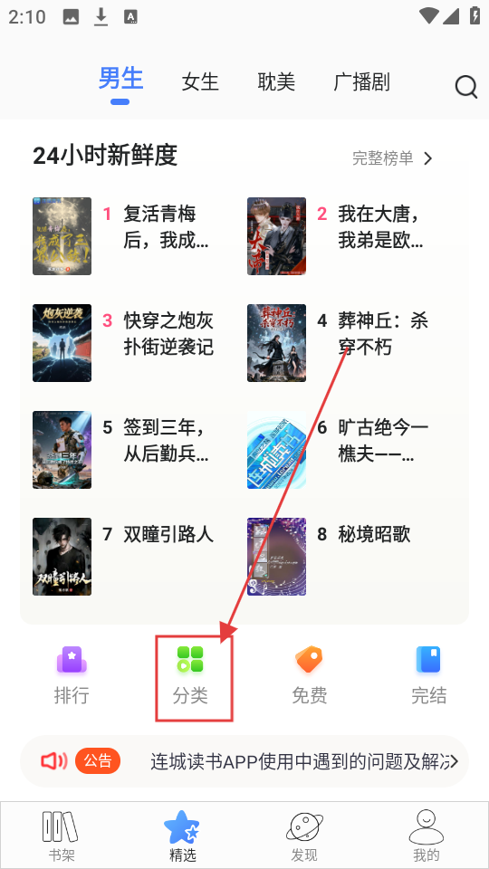 1、在精选页面点【分类】,进入后可选择小说类型,精准找书超方便哦。