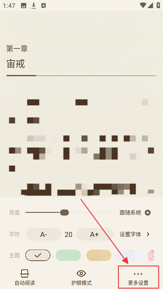 3、打开设置后,除了基础设置,点击【更多设置】,能找到更多个性化的阅读设置选项,满足不同阅读需求。