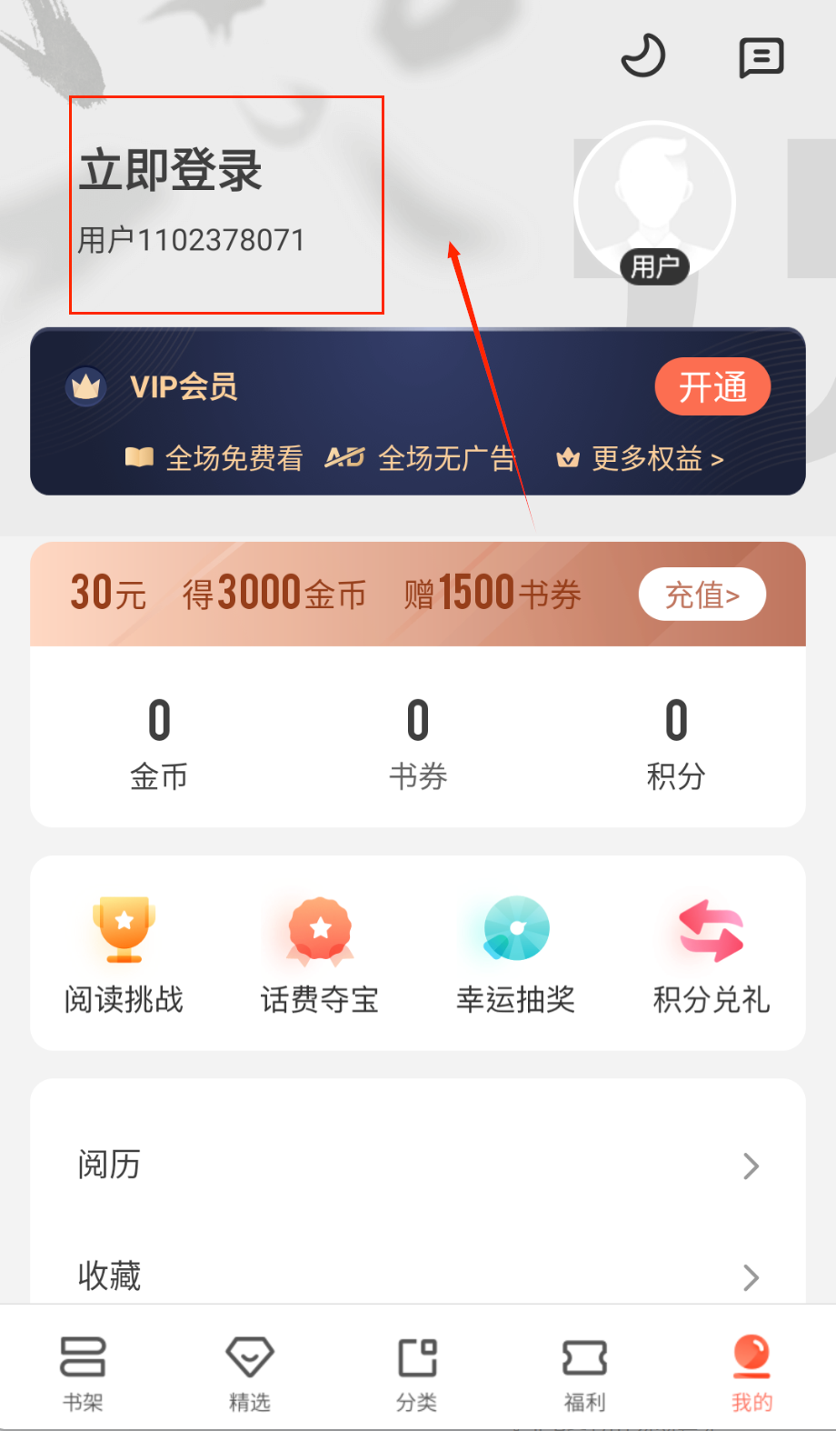 1、打开软件后先完成账号登录,在"我的"页面点击"立即登录"绑定账号,这样就能同步阅读记录和使用收藏功能。