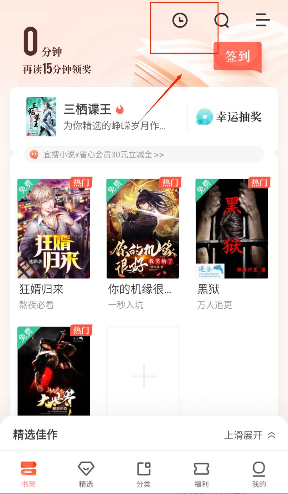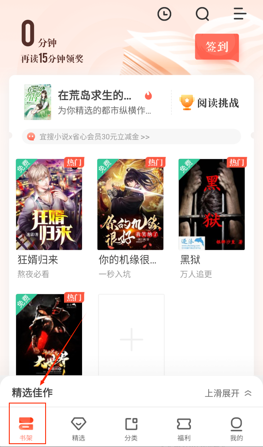 1、精选页面有不少好书,但若想领福利,就点击底部【福利】,进入福利任务页面看看。