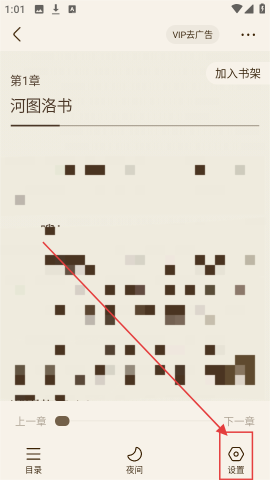 2、进入小说阅读页后,若想调整阅读相关设置,就点击右下角【设置】,打开设置选项开始调整吧。
