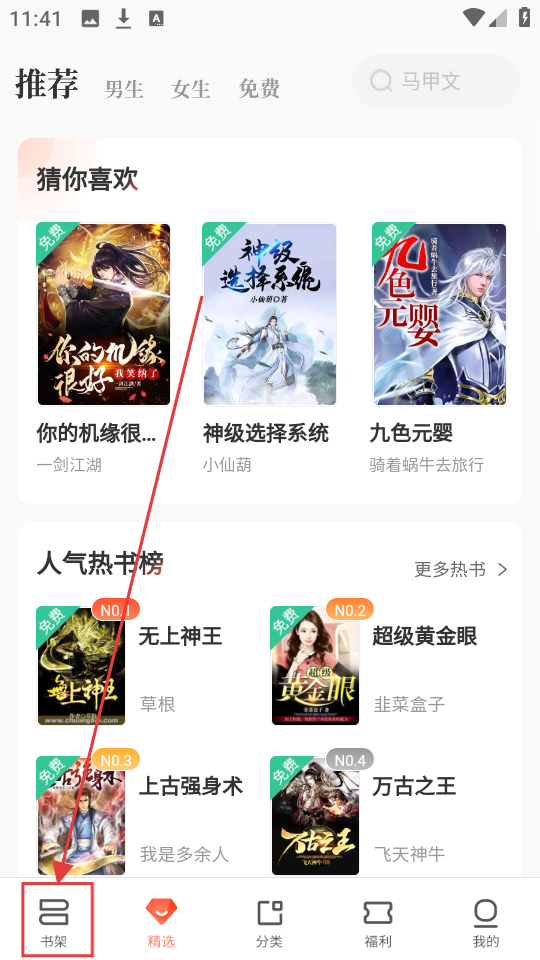 3、多关注人气榜单和推荐板块,"猜你喜欢"会根据阅读习惯推送相似作品,"人气热书榜"展示热门作品,跟着大众选择不容易踩坑呢。