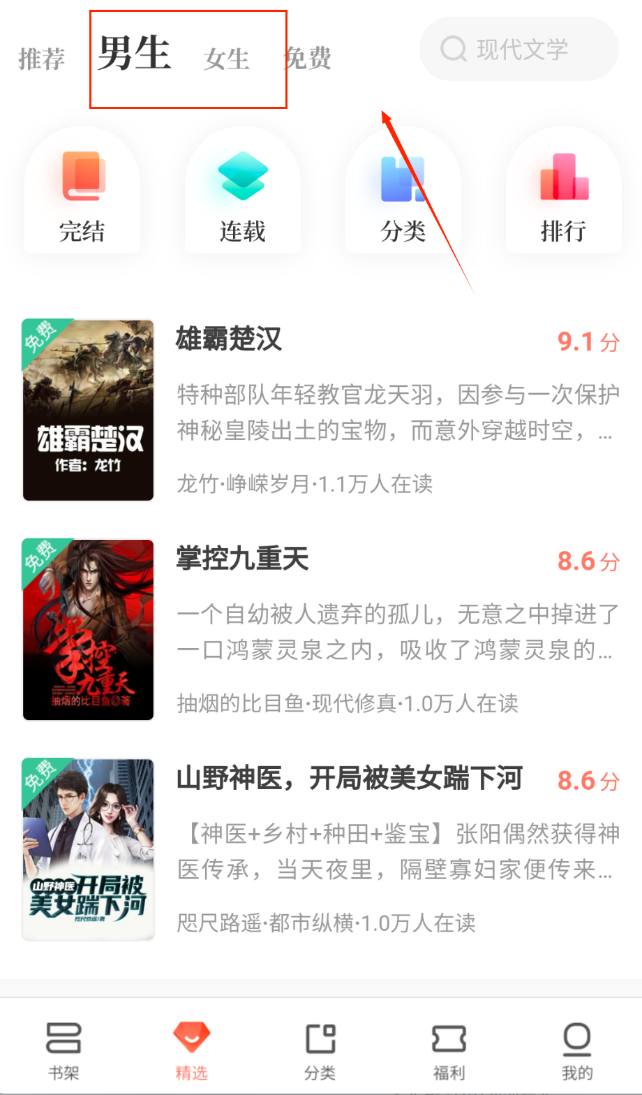 1、根据性别偏好选择分类,首页有男生、女生专属频道,不同频道推荐的作品风格会更有针对性,帮你快速筛选感兴趣的内容呀。