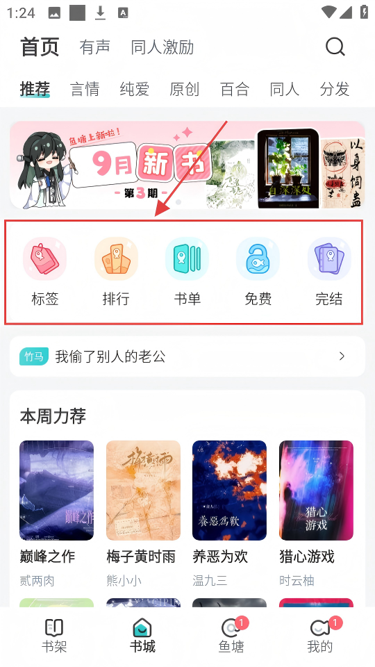 1、在首页,能看到【标签】【排行】等功能按钮,通过这些可快速找到心仪作品,超方便的。