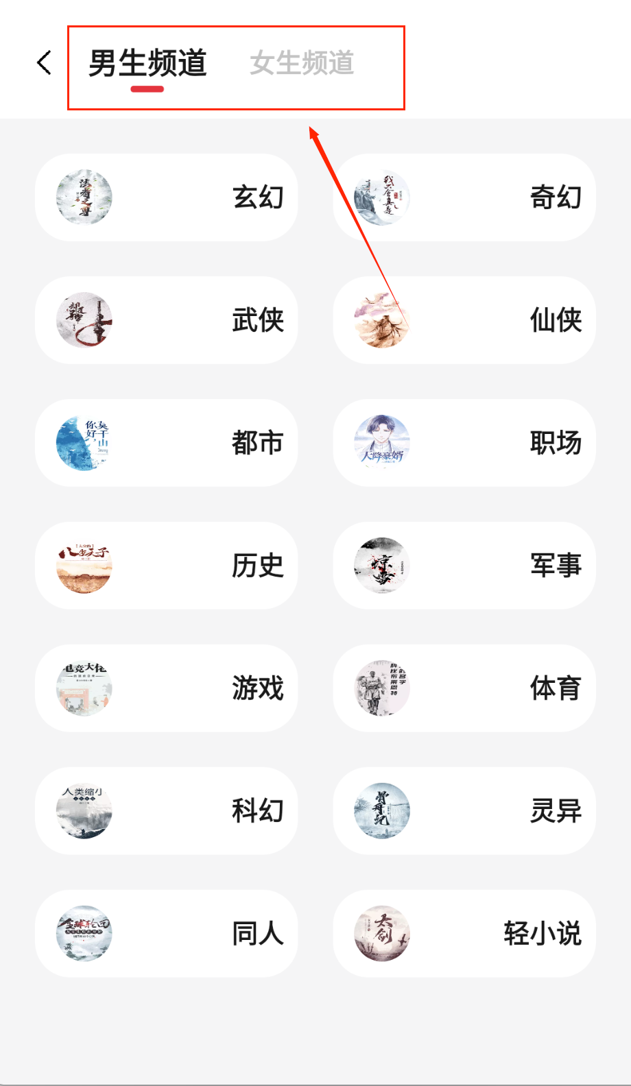 1、打开软件后先从底部导航进入书城页面,这里按男生频道和女生频道分类,每个频道都有对应的书籍分类哦。