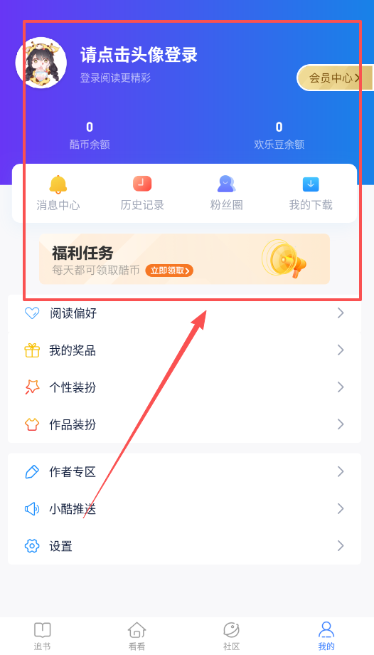 1、核心第一步是登录账号,登录后你才能在会员中心清晰掌握自己的资产余额与阅读记录。