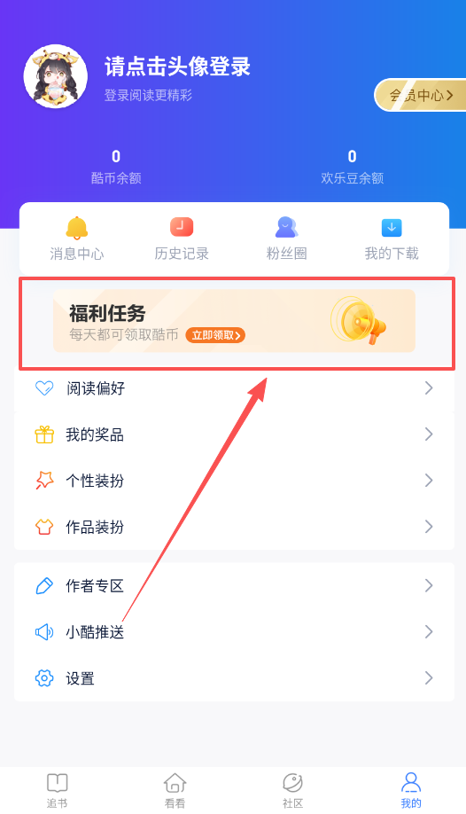 4、积极完成“福利任务”是获取免费酷币的主要途径,善用这些奖励可以有效降低你的阅读成本,实现快乐阅读。