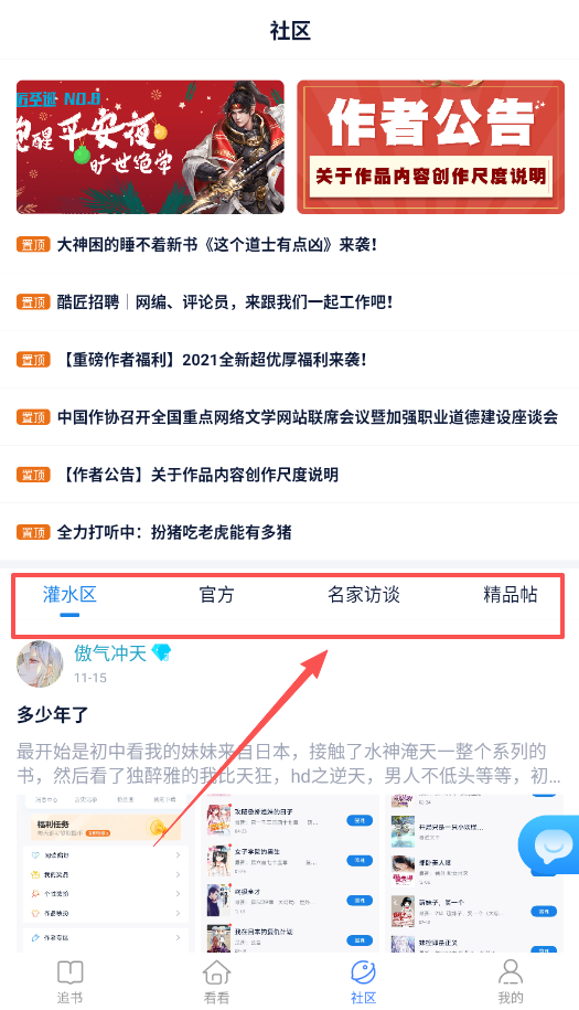 3、在“社区”的“灌水区”和“精品帖”中,你可以阅读其他书友的分享和评价,为你的书单寻找更多灵感和参考。
