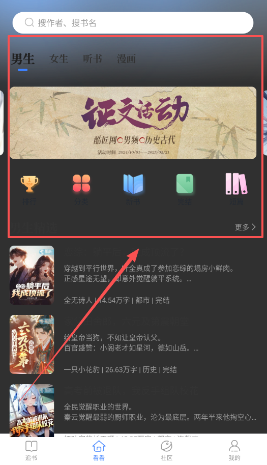 2、利用首页的筛选功能,结合书名、分类和完结状态等多重条件,可以更精准地找到合你口味的书籍。