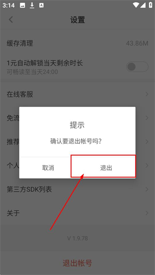3、在提示框中,点击【退出】,可确认退出当前帐号啦。