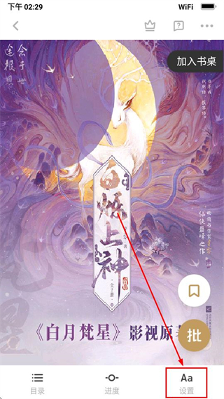 3、在阅读界面点击【设置】,就能进入设置界面,调整阅读相关选项哦。