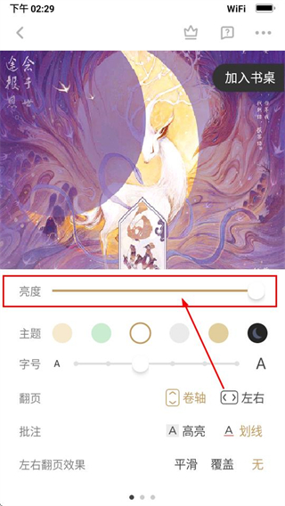 4、在设置界面拖动亮度滑块,就能调整阅读界面的亮度,提升阅读体验啦。