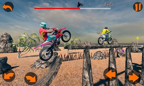 2、在这款游戏中,摩托车赛车中将自己变成特技,加速车轮,为乐趣做好准备,尽情展示自己的特技。