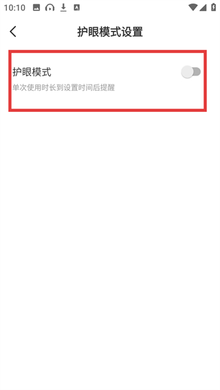 4、在护眼模式设置页点【护眼模式】的开关,就能启用该功能,使用时长到后会提醒哦。