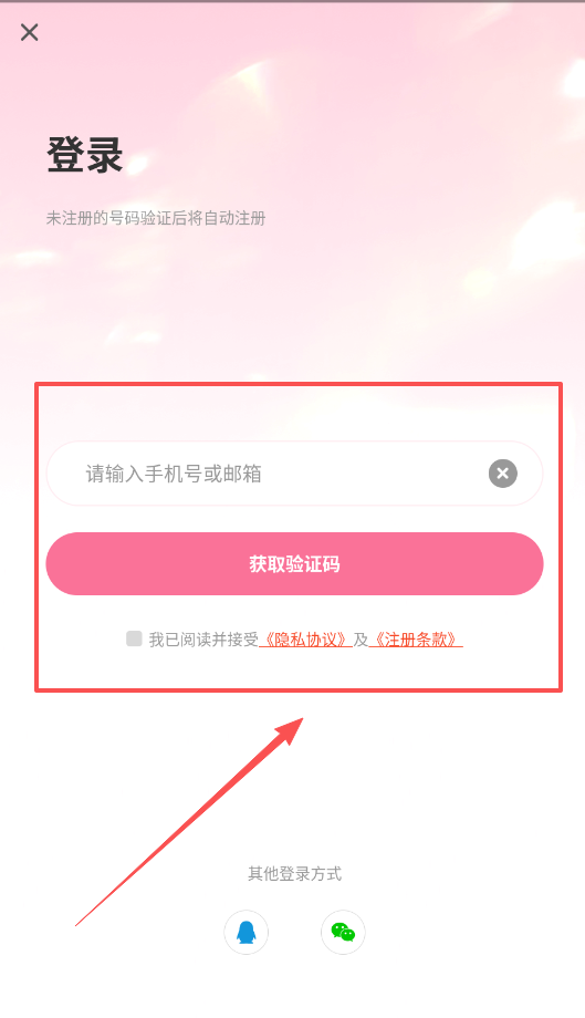 1、首先打开书耽APP,在登录页面输入你的手机号或邮箱,这样就能快速进入主界面了哦。