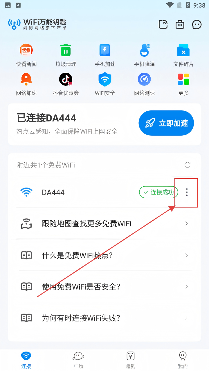 3、WIFI万能钥匙安卓版 一键上网,消除任何的广告出现,更好的显示状态栏图标。