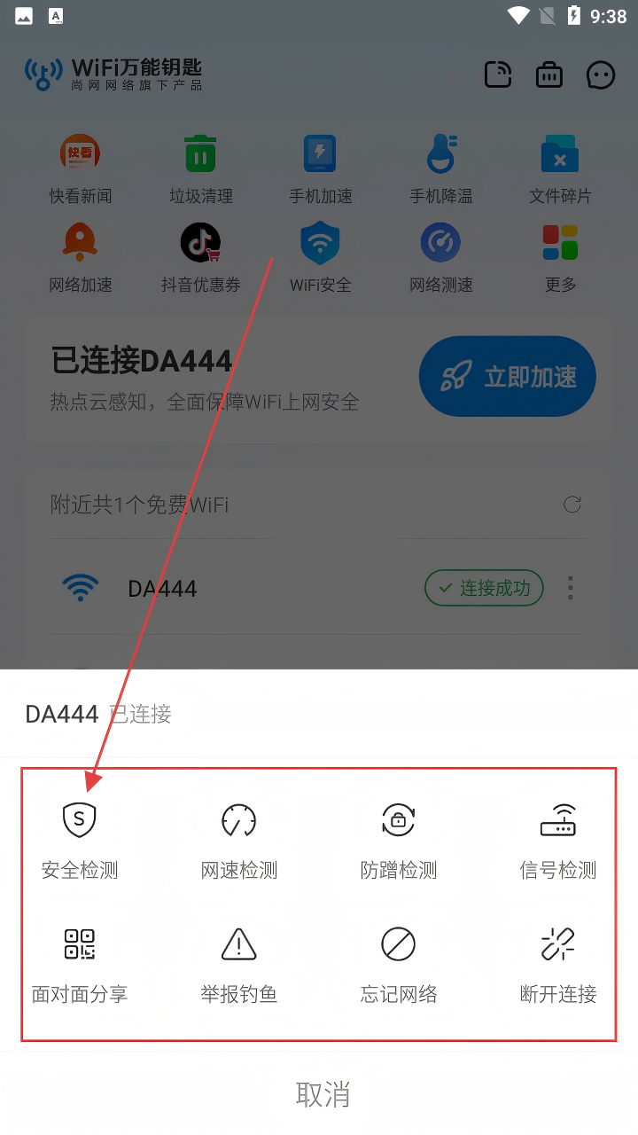 2、在展开的功能菜单里,找到【安全检测】选项并点击,启动网络安全检测流程。