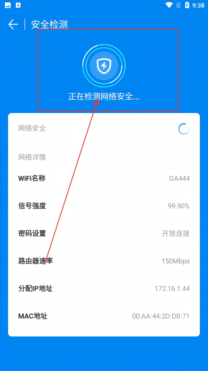 3、进入安全检测页面后,系统会自动进行网络安全检测,耐心等待检测完成即可。