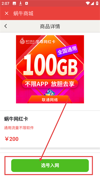 4、进入免卡详情页后,点击【选号入网】按钮,就能进入号码选择及办理流程啦。