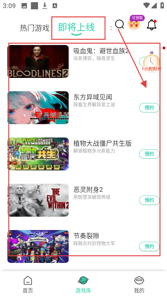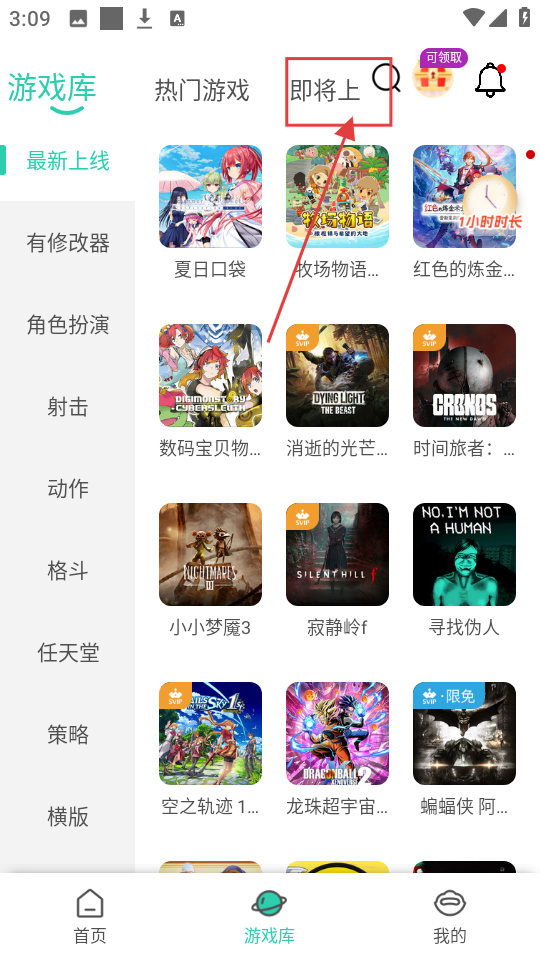 2、在【游戏库】里找【即将上线】标签,点进去能看到待上线游戏,试试吧。
